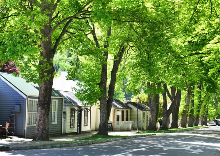Ice storms damage tall trees around the newer developments in this area. Emergency removal protects the two-story homes common throughout these streets.